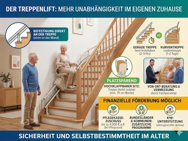 Das eigene Zuhause ist voller schöner Erinnerungen. Hier fühlen wir uns am wohlsten und möchten natürlich auch im Alter gerne wohnen bleiben. Doch mit der Zeit kann das Treppensteigen schwerfallen und viel Kraft kosten. Oft macht man sich dann Sorgen, ob man vielleicht sogar umziehen muss. Aber das ist meist gar nicht nötig! Um weiterhin sicher und selbstständig alle Zimmer im Haus zu nutzen, gibt es eine einfache Lösung: den Treppenlift.